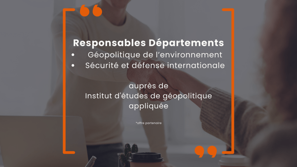 - Responsable Département Géopolitique de l’environnement (⏳clôture des candidatures le 15 janvier 2024)